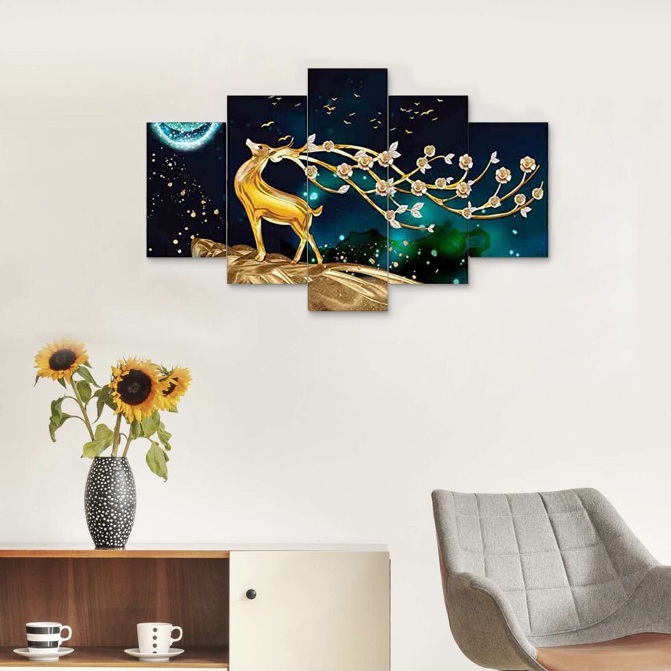Elevate your home decor with the exquisite Set of Five 3D Framed Paintings. These captivating artworks are designed to bring a touch of elegance and sophistication to your living space. Ideal for home, living room, and bedroom decoration, this collection adds a vibrant and artistic flair to any room.Presents This Set Of 5 Amazing Paintings For Your Wall . The Painting Will Completely Change The Atmosphere Of The Room Whire It is Placed . The Paintimg Is Made On Heavy Wooden Board And Has A Digital UV Coating On It Which MAKES It Very Easy To Clean . Pricing Of The Product Is Made Very Reasonable From Our Brand As Per The Quality We Are Providing To Our Customers